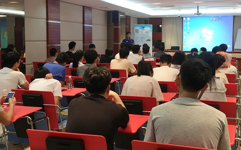 最后一站,學生們來到了集團總部,石獅豪寶染織副總經理吳灶生親自接待,在集團多功能廳向學生介紹華寶集團的基本情況,并向學生分享求職方向和經驗,表達了公司人才儲備需求,現場反響熱烈。