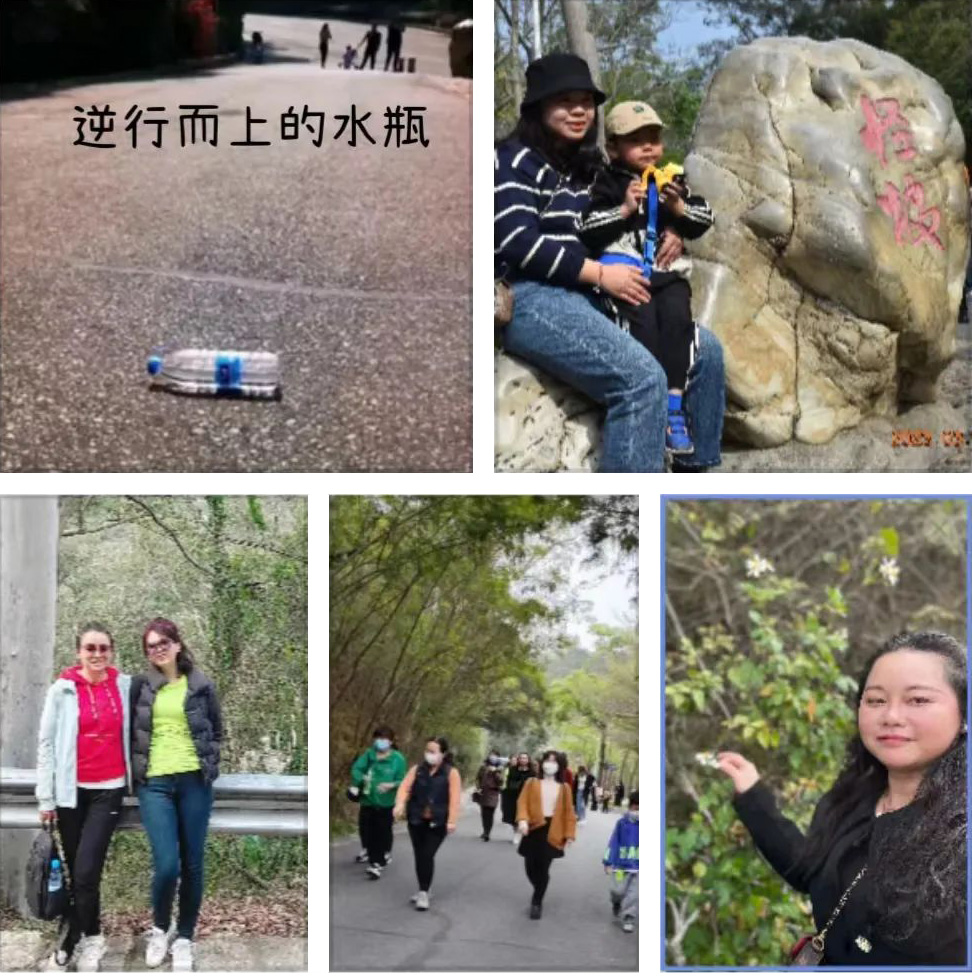 抵達第一站:廈門怪坡 “廈門怪坡,位于廈門文曾路通往半嶺宮的路上,怪坡”長約50米,寬約10米。這個怪坡怪就怪在東西會從坡底滾到坡頂,無論如何試,都是這樣的。“怪坡”其實是人的眼睛因周邊參照物的原因而造成的一種視覺上的錯誤。女職工在這里拍照打卡。